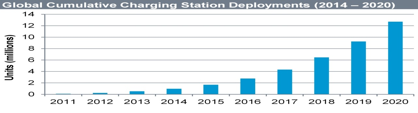 2014 年全球電動車充電樁約有100 萬個,預(yù)計在 2020 年將會達(dá)到 1270 萬個的規(guī)模,其中,近 10% 的電動車充電站是公共的,或者是半公共開放狀態(tài)。 2015年全球汽車充電服務(wù)營收將達(dá)到1億5260萬 美元,到2023年將達(dá)到29億美元。 |