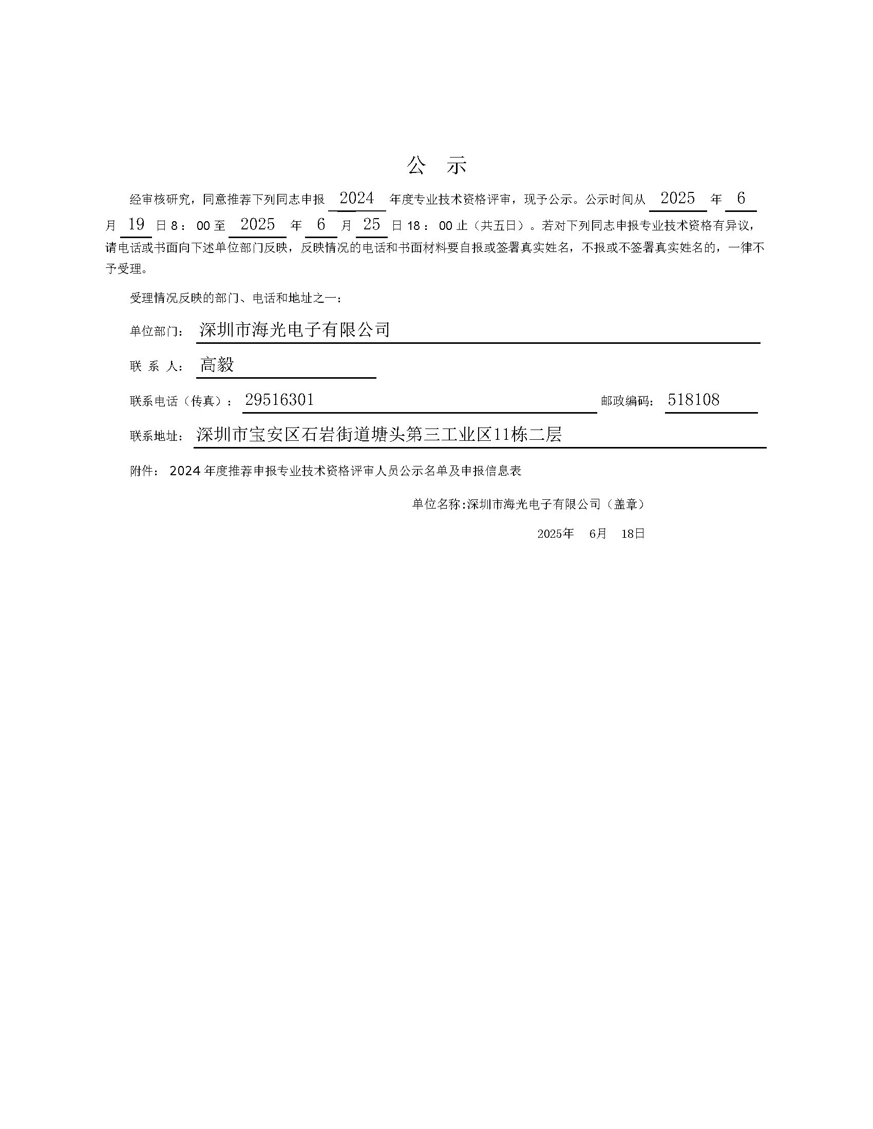 1.(高級(jí)) 級(jí)職稱申報(bào)人基本情況及評審登記表,在本公司網(wǎng)站進(jìn)行公示。