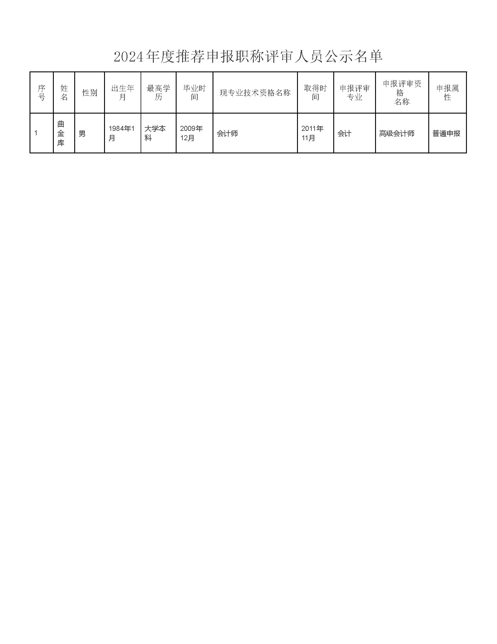 根據(jù)廣東省人力資源和社會(huì)保障廳《關(guān)于印發(fā)廣東省職稱評審管理服務(wù)實(shí)施辦法及配套規(guī)定的通知》(粵人社規(guī)〔2020〕33號(hào))、廣東省人力資源和社會(huì)保障廳 廣東省財(cái)政廳《關(guān)于印發(fā)廣東省會(huì)計(jì)人員職稱評價(jià)標(biāo)準(zhǔn)條件的通知》(粵人社規(guī)〔2025〕10號(hào))、廣東省財(cái)政廳 廣東省人力資源和社會(huì)保障廳《關(guān)于開展2024年度高(正高)級(jí)會(huì)計(jì)師職稱評審工作的通知》(粵財(cái)會(huì)〔2025〕5號(hào))和深圳市人力資源和社會(huì)保障局《關(guān)于做好我市2024年度職稱評審工作的通知》(深人社發(fā)〔2024〕59號(hào))文件的相關(guān)規(guī)定,我公司曲金庫擬申報(bào)高級(jí)會(huì)計(jì)師職稱,現(xiàn)予以評前公示。